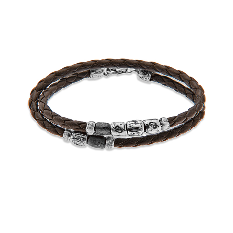 Los materiales: Realizada con plata 925mm. y cuero trenzado marrón. Sistema de cierre de mosquetón.