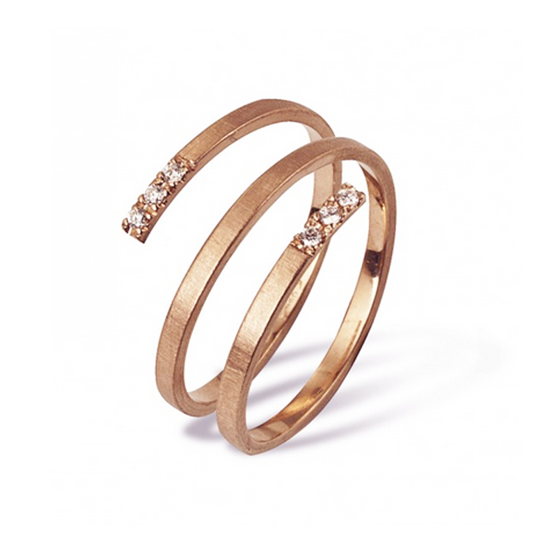 Los materiales: El anillo "Vuelta III" está hecho con oro rojo de 18 quilates (750mm.), y seis diamantes de 0,042 quilates.