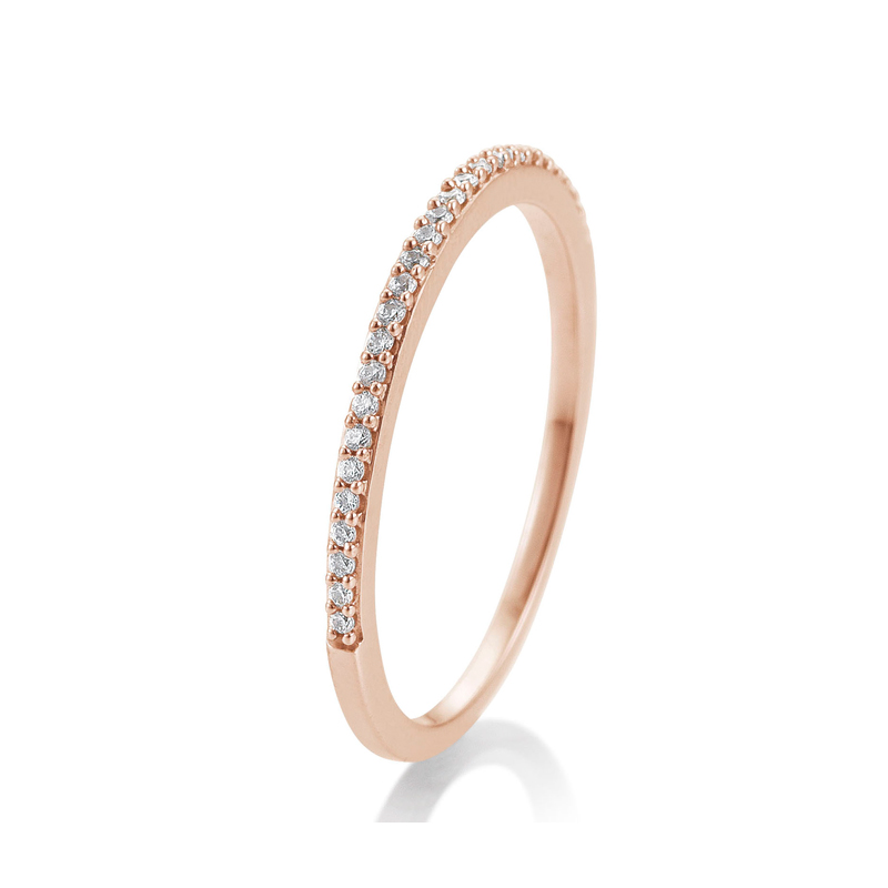 Anillo de oro rosa de 18 quilates (750 mm.) y diamantes con talla brillante W-SI, 0,112 quilates.