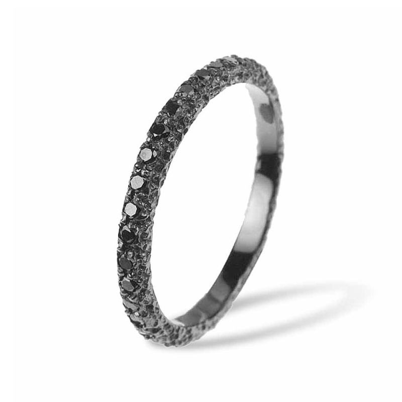 Realizado con oro blanco de 18 quilates (750 mm.) con acabado de rodio negro, y 34 diamantes con talla brillante de 0,34 quilates de color negro.