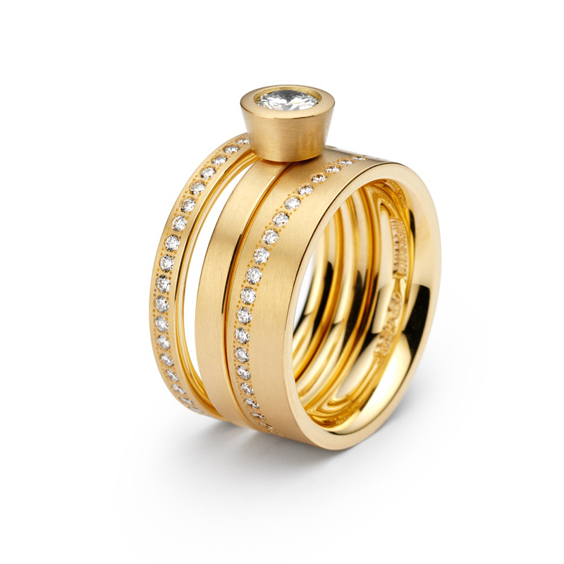 Anillo solitario diseñado por Niessing, colección Lumen. El solitario lleva un diamante con talla brillante de 0,21 quilates TW-SI.