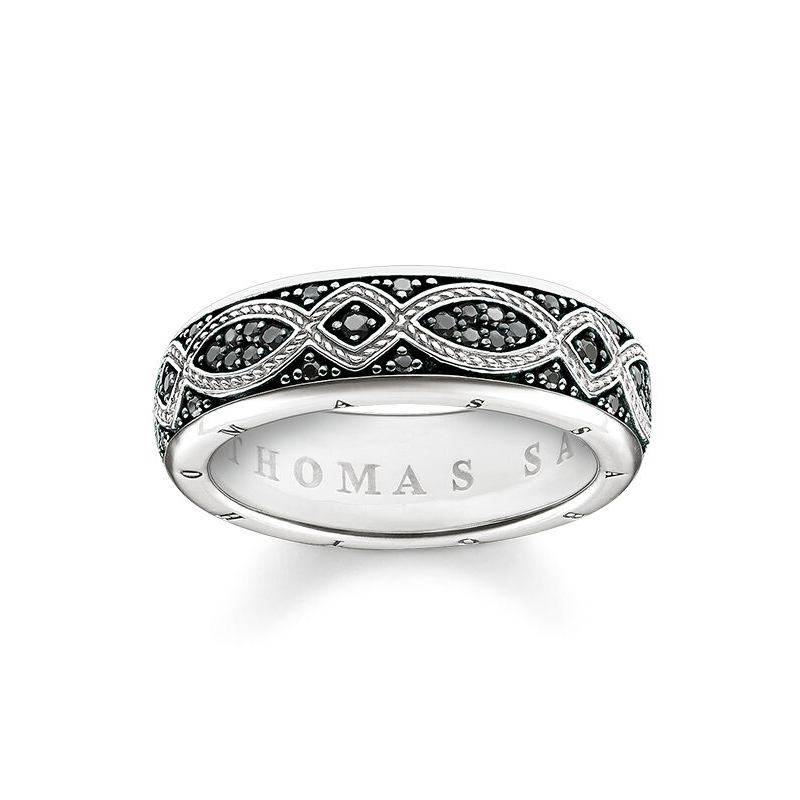 El anillo "Alianza nudos infinitos" está hecho de plata 925 mm. y circonitas negras.