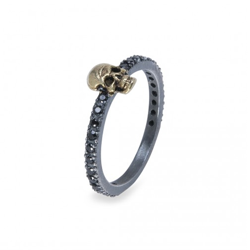 Este anillo está hecho con plata 925 mm., la calavera lleva un chapado de oro y circonitas negras.