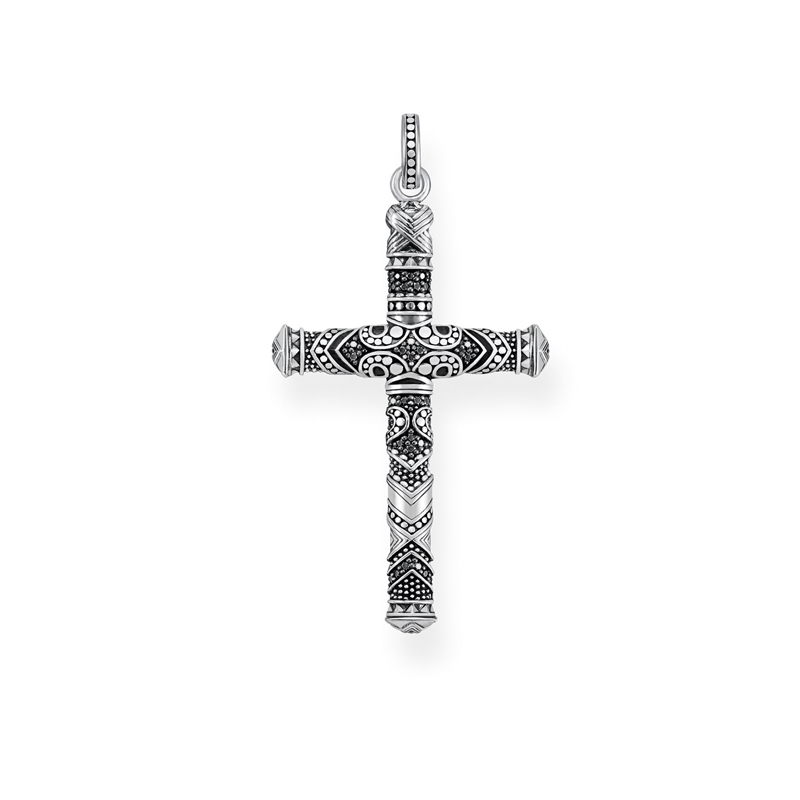 El colgante "Cruz inspiración maorí" está hecho de plata 925 mm. y pequeñas circonitas de color negro.