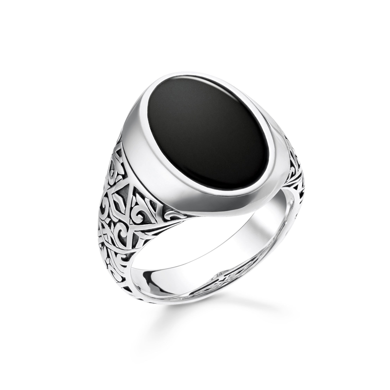 El anillo sello "Ónix negro pulido" está hecho de plata 925 mm. y lleva un ónix central plano y con acabado pulido.