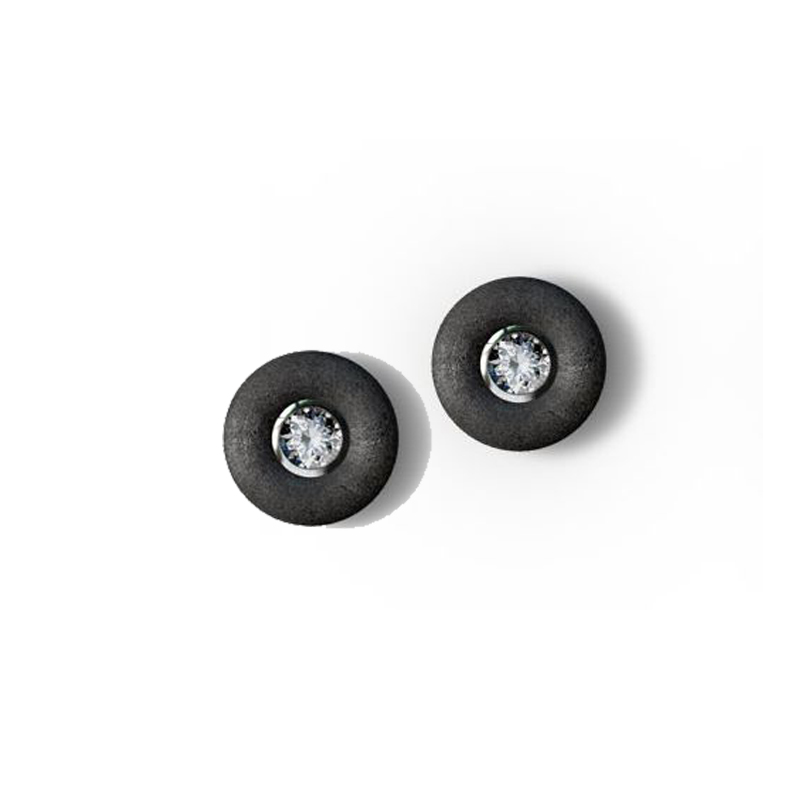 Realizados con caucho, oro blanco de 18 quilates y 2 diamantes con talla brillante W-SI, 0,20 quilates. Sistema de cierre de presión.