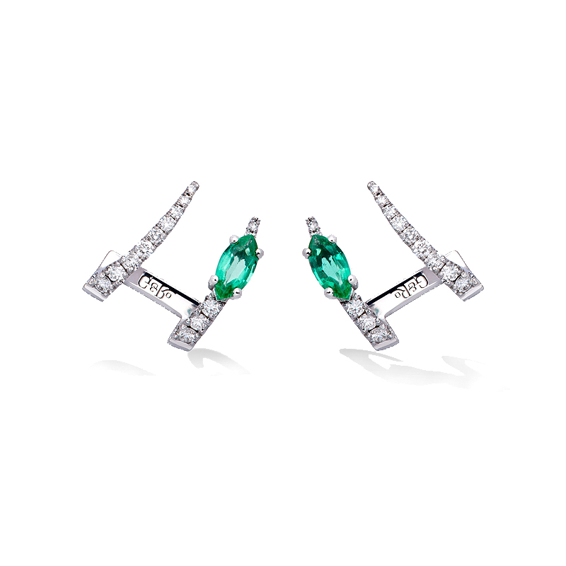 Materiales: Oro blanco de 18 quilates. Diamantes con talla brillante, 0,31 quilates. 2 esmeraldas con talla oval, 0,40 quilates.